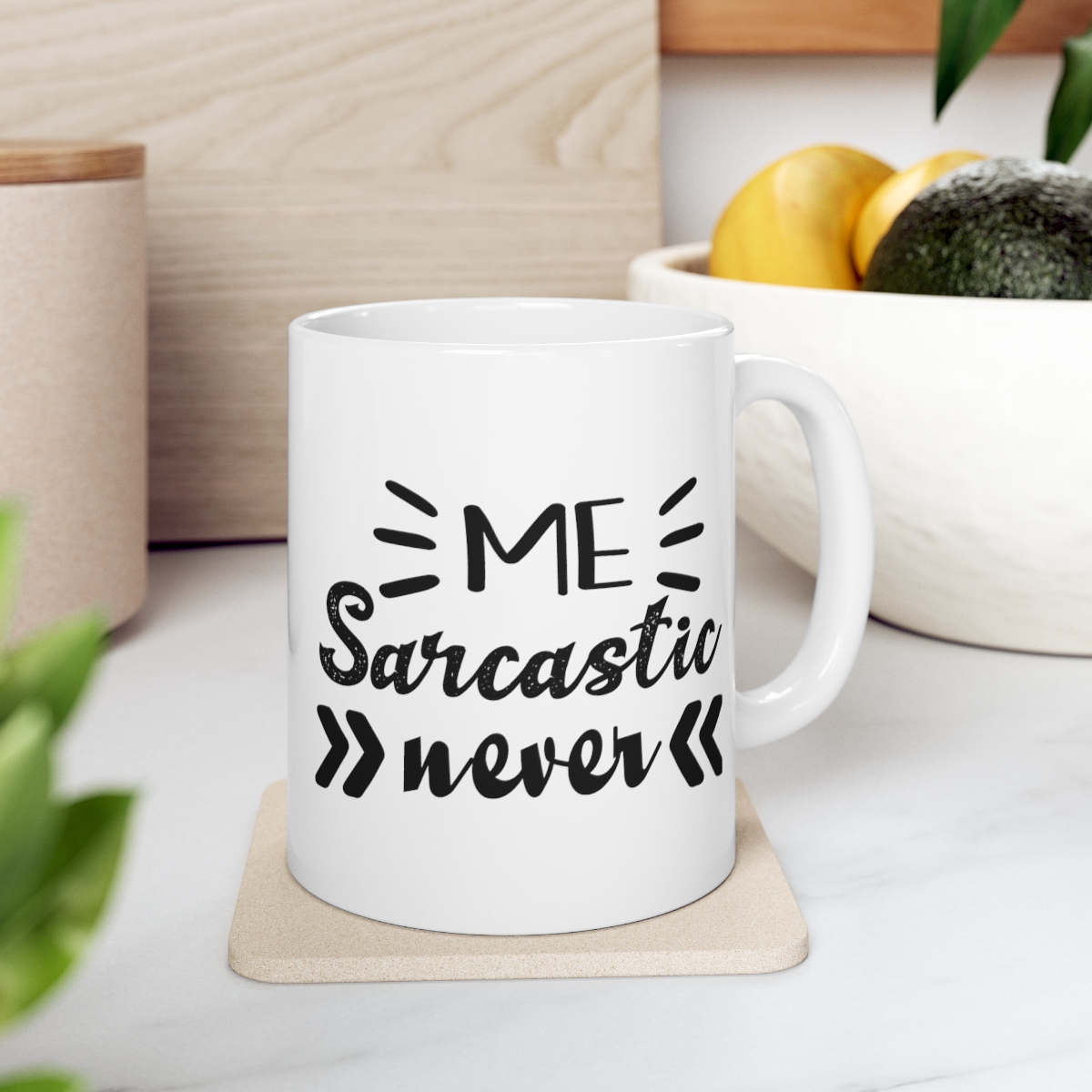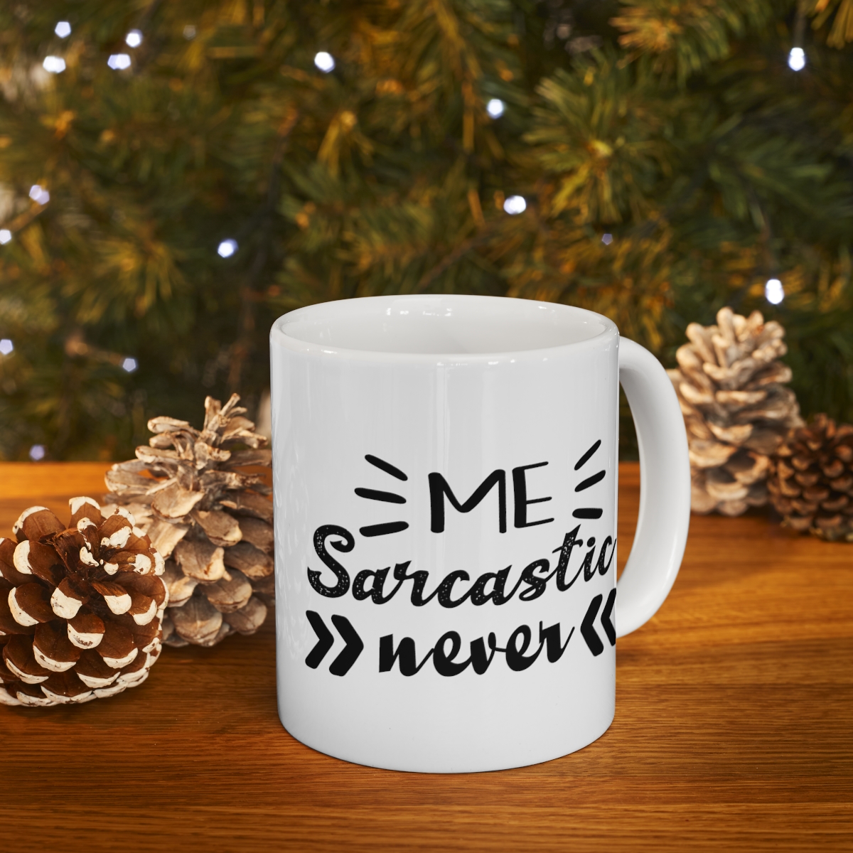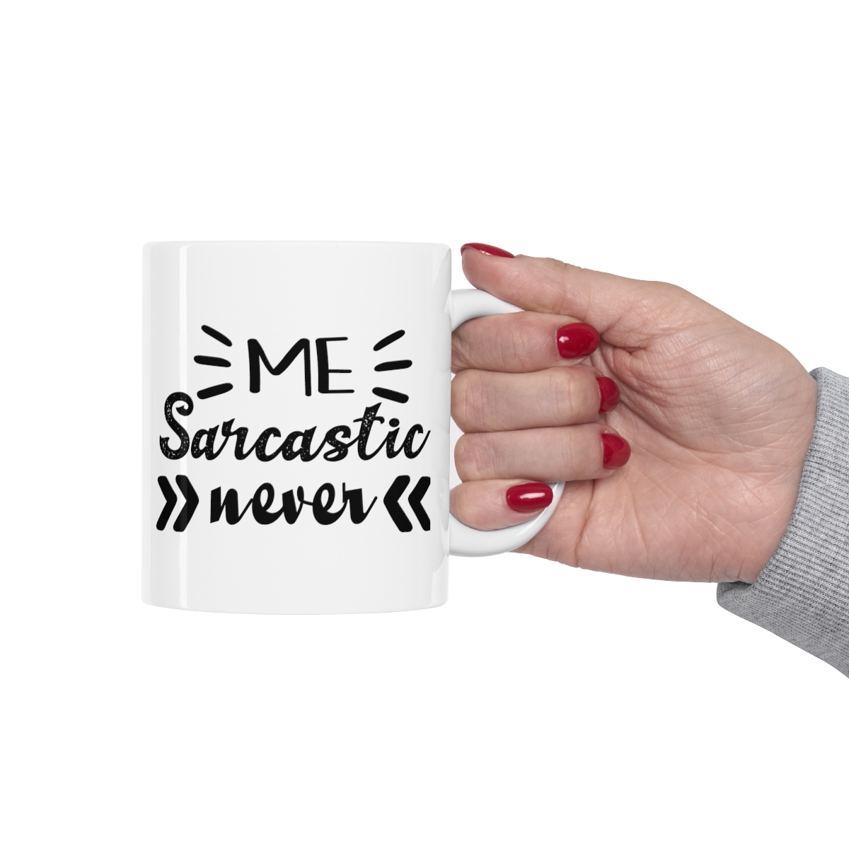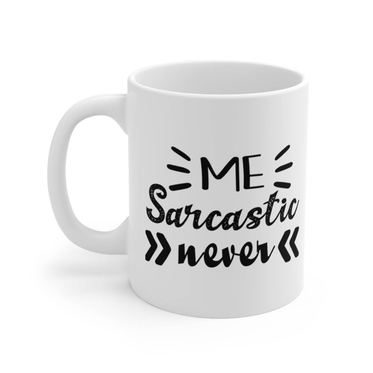“Me Sarcastic Never” – Funny Double Sided Print – White Ceramic Mug 11oz