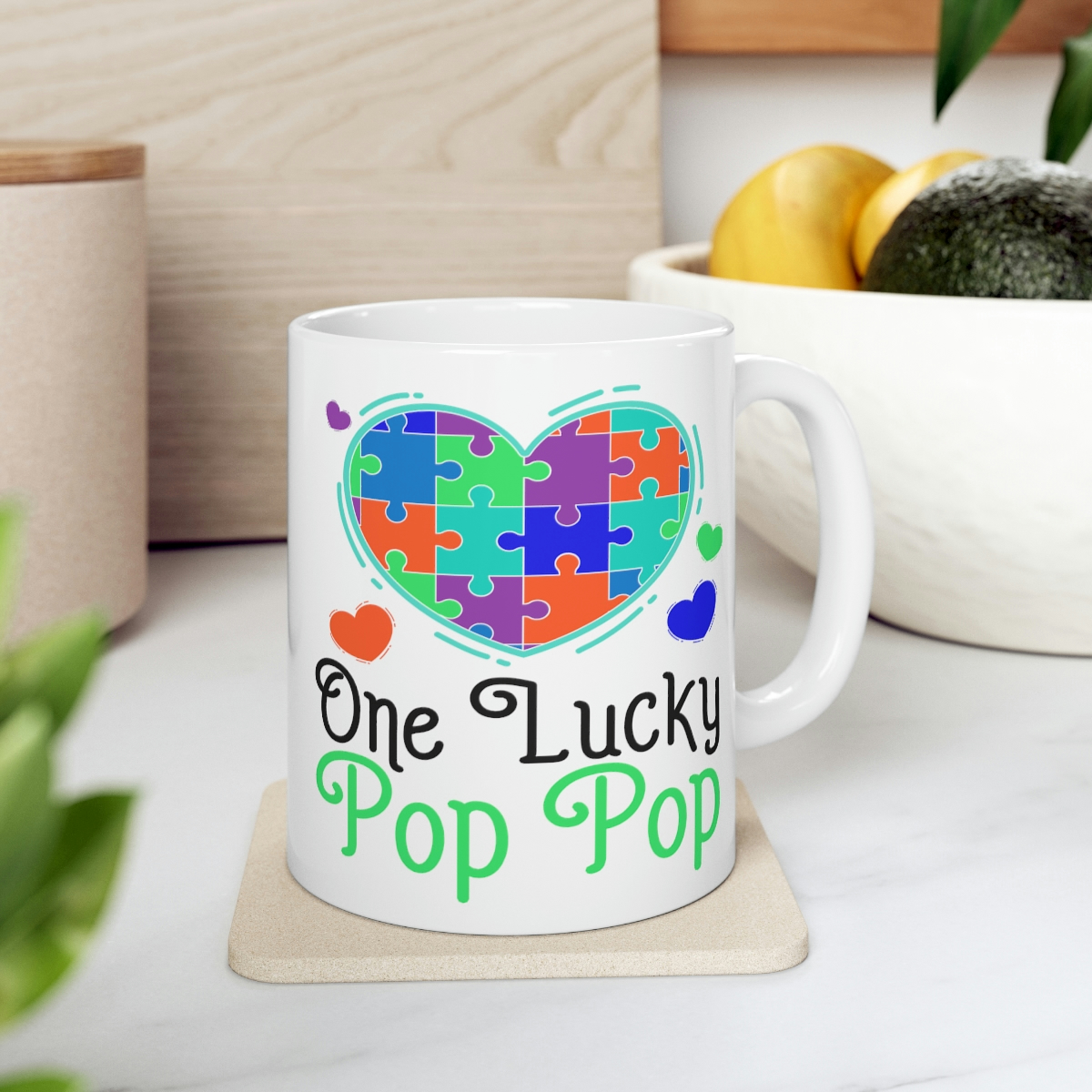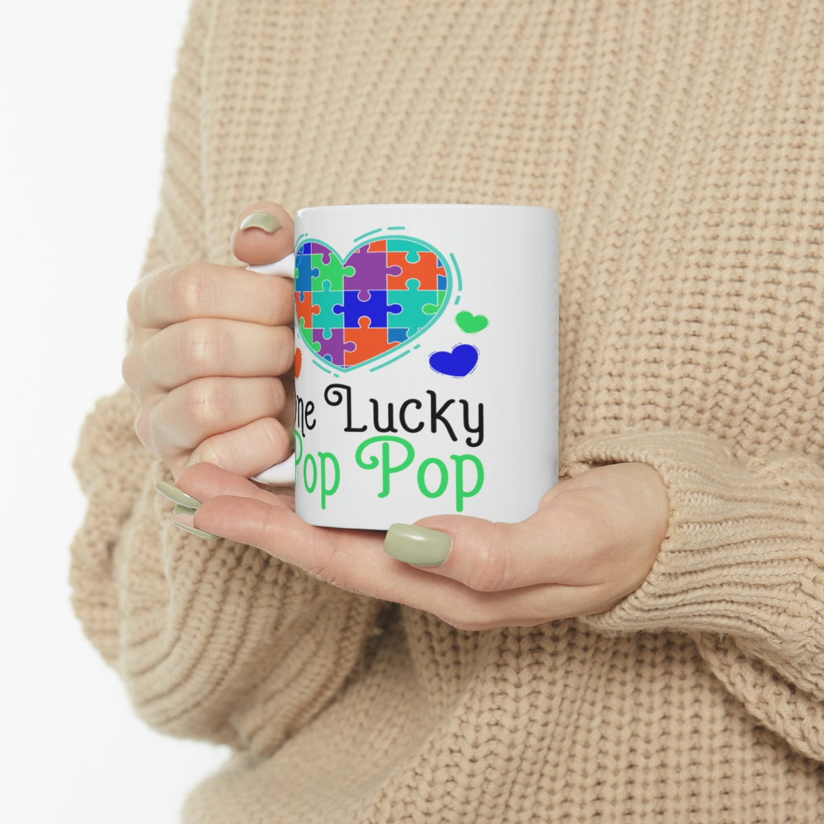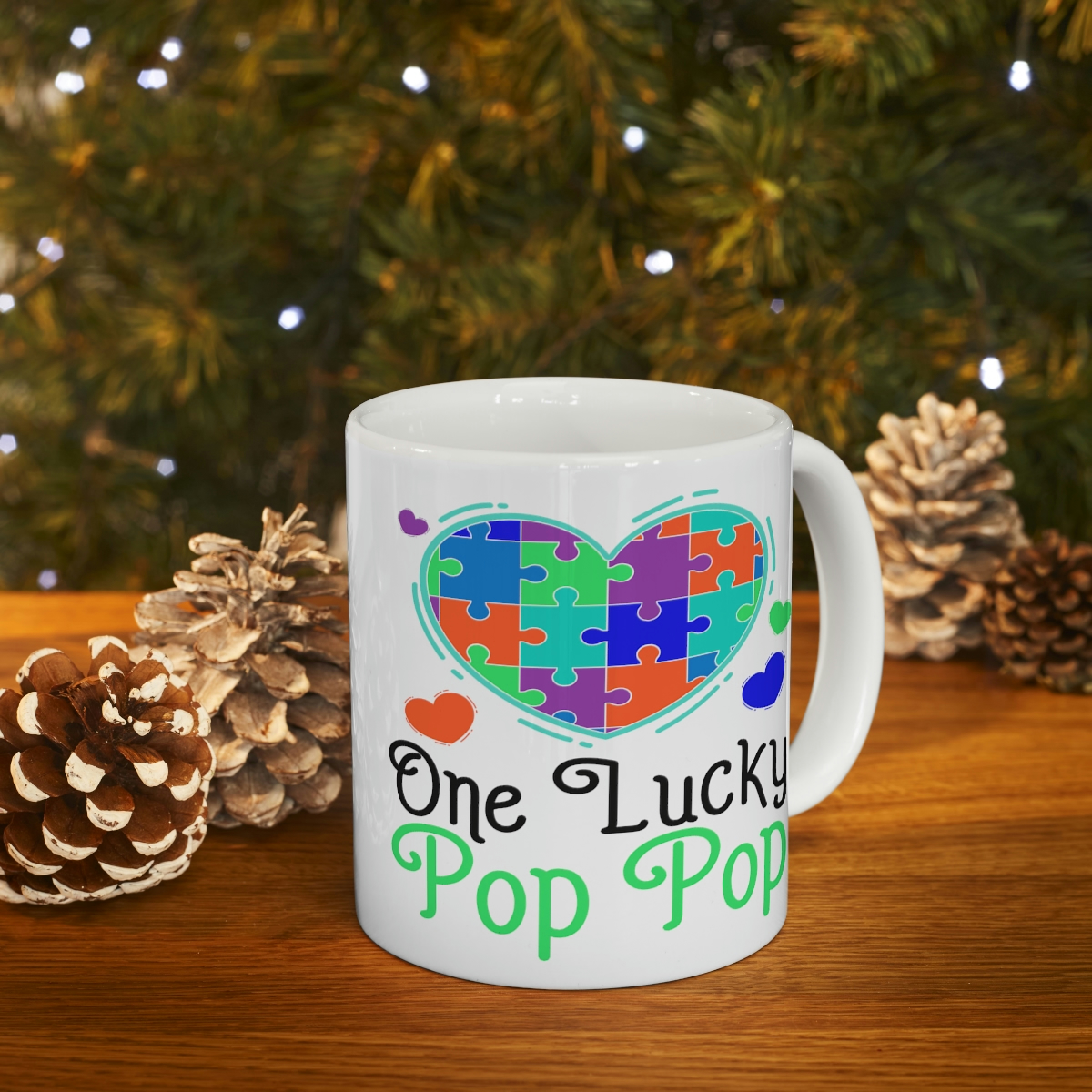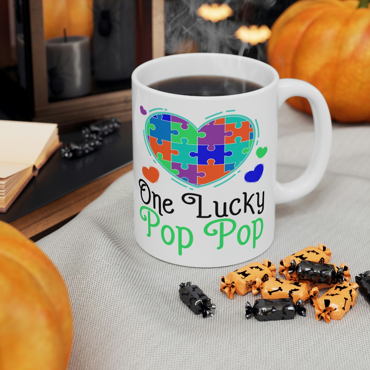 “One Lucky Pop Pop” – Funny Double Sided Print – White Ceramic Mug 11oz