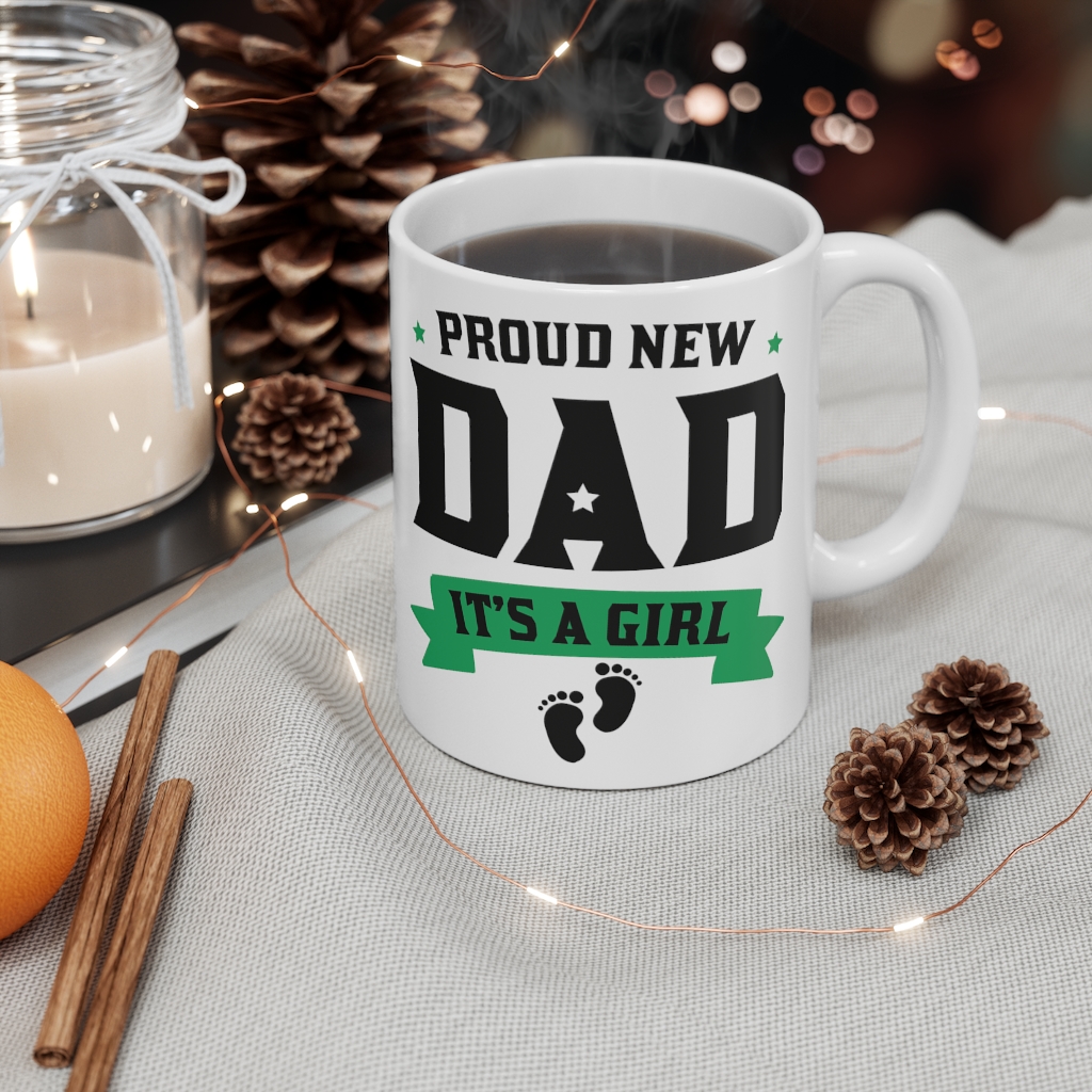 “Proud New Dad It’s A Girl” – Funny Double Sided Print – White Ceramic Mug 11oz