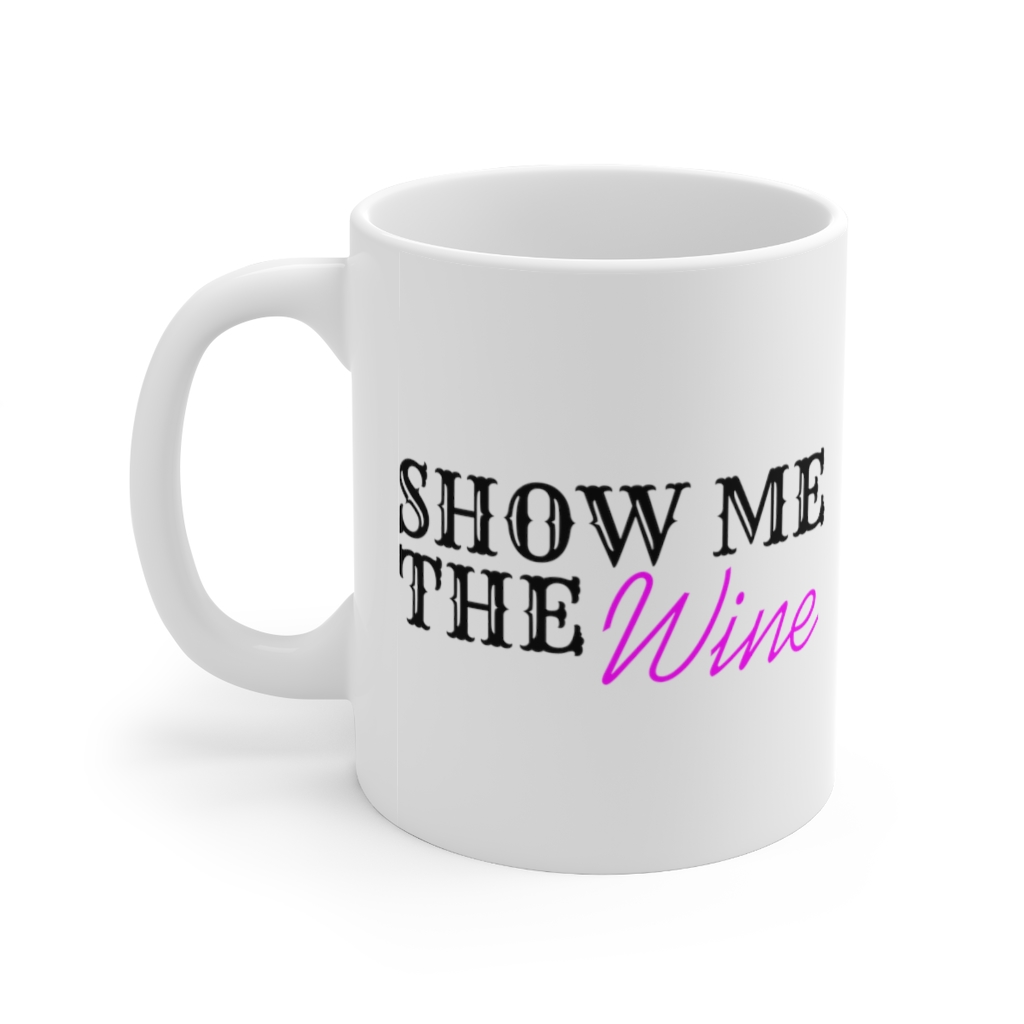 “Show Me the Wine” – Funny Double Sided Print – White Ceramic Mug 11oz