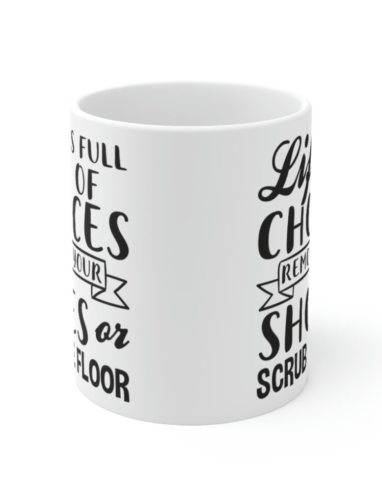 “Life is Full of Choices Remove Your Shoes or Scrub the Floor” – Funny Double Sided Print – White Ceramic Mug 11oz