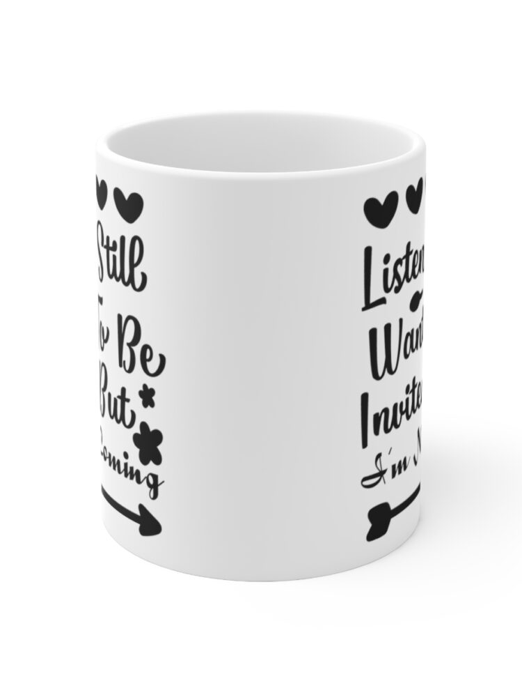 “Listen I Still Want To Be Invited But I’m Not Coming” – Funny Double Sided Print – White Ceramic Mug 11oz