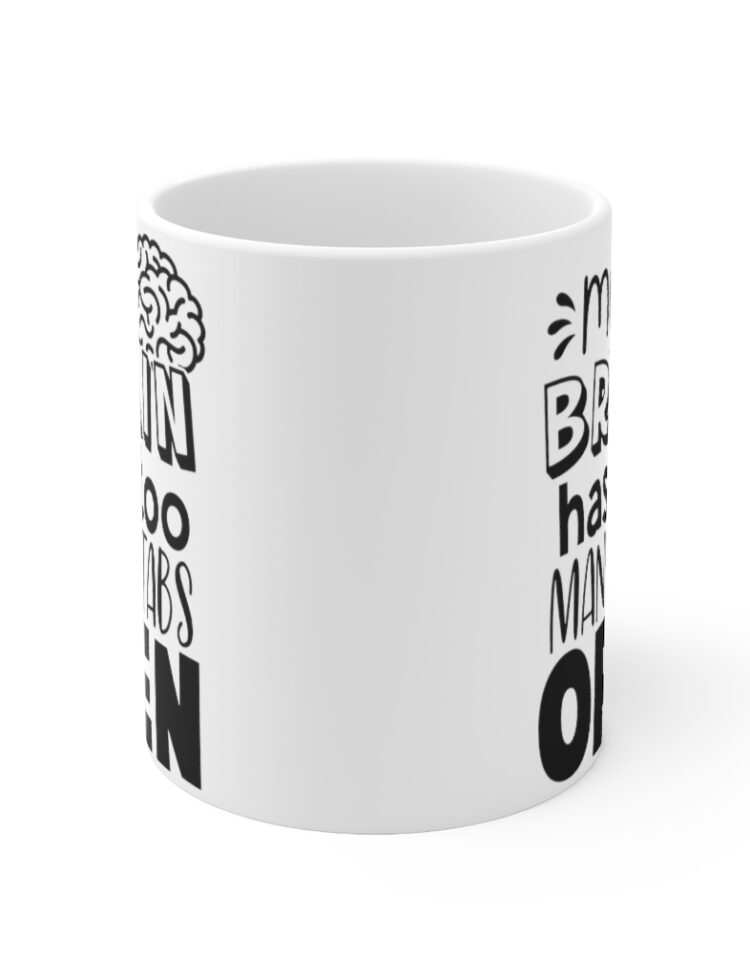 “My Brain Has Too Many Tabs Open” – Funny Double Sided Print – White Ceramic Mug 11oz