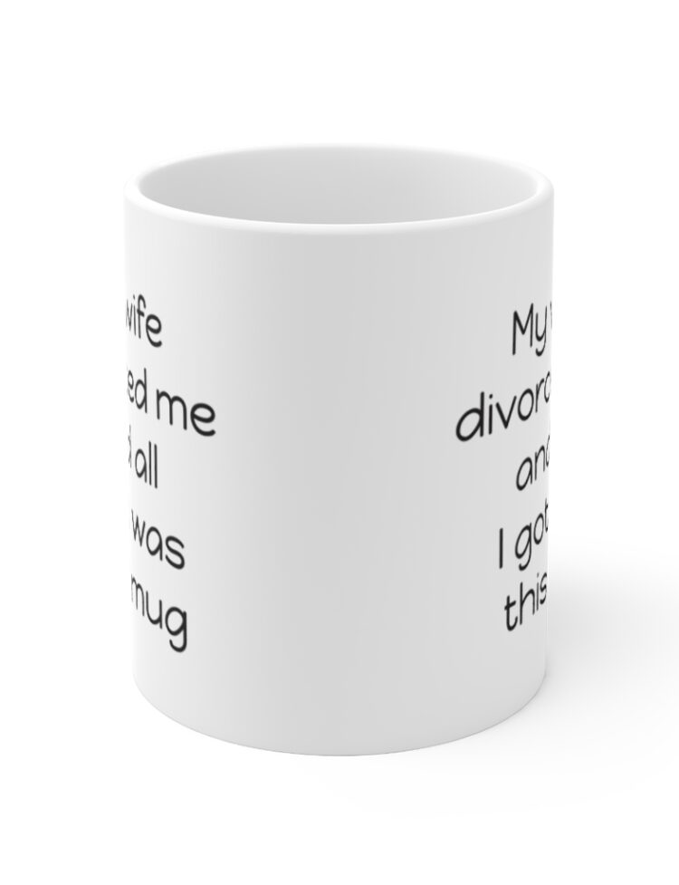 “My wife divorced me and all I got was this mug” – Funny Double Sided Print – White Ceramic Mug 11oz