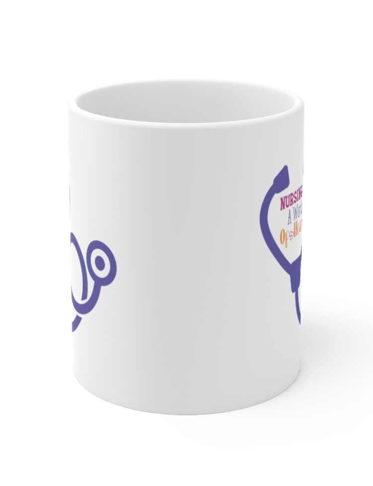 “Nursing is a Work of Heart” – Funny Double Sided Print – White Ceramic Mug 11oz
