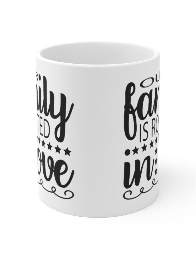 “Our Family is Rooted in Love” – Funny Double Sided Print – White Ceramic Mug 11oz