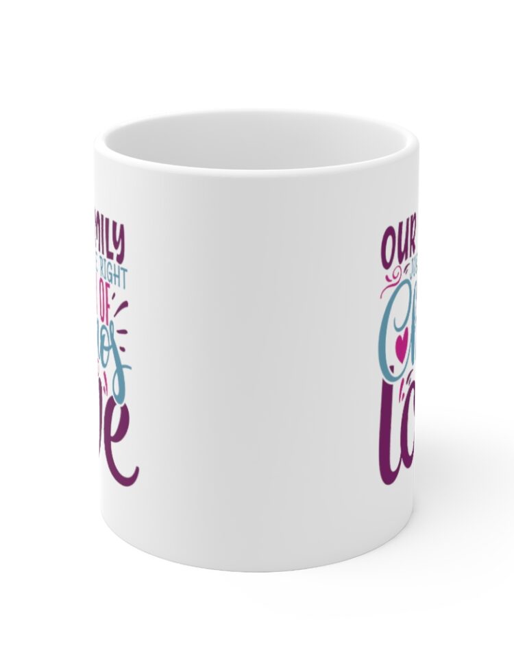 “Our Family Just the Right Mix of Chaos and Love” – Funny Double Sided Print – White Ceramic Mug 11oz